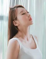 模特的表現也是这组写真的亮点之一。丰满的身材在白色背心的包裹下,展现出健康与自信的女性美,没有过分修饰,而是通过自然姿态传递真实情感。例如,慵懒的倚靠、微笑的侧脸或舒展的手臂,都让照片充满动态感,避免了静态摆拍的僵硬。窗前场景为模特提供了互动元素,如触摸窗框、凝视窗外或闭眼感受微风,这些细节让写真超越外表展示,深入内心世界的表达。白色背心作为简约单品,在此成为焦点,它不仅是服装,更是一种符号——代表纯净、自由与感性,与模特的丰满曲线共同诠释了“少即是多”的美学理念。这种组合在摄影中颇具挑战,但本组照片成功平衡了性感与优雅,让观者感受到一种亲切而高级的视觉享受。