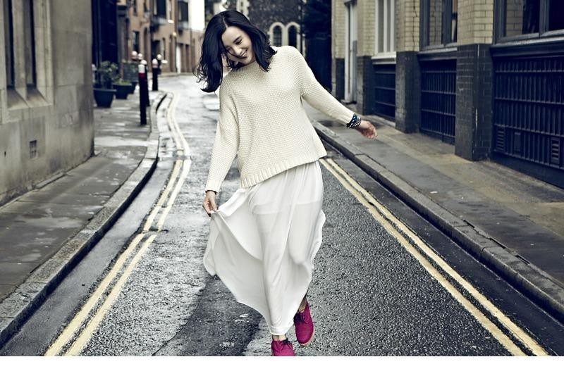 小宋佳秋日街拍演绎飘逸白纱裙时尚新风尚