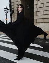 回顾杨超越的时尚之路,这并非她首次挑战黑色风格。早在2019年首次亮相巴黎时装周时,她以全黑风衣搭配紧身裙的造型,就已初显驾驭御姐风格的潜力。从那时略带探索意味的尝试,到今天这组游刃有余、气场全开的街拍,可以清晰看到她在时尚表现力上的飞速成长与蜕变。她已从那个需要特定服装衬托风格的女孩,成长为能够完美消化并赋予服装独特灵魂的时尚驾驭者。