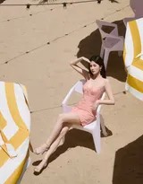 在许多镜头中,她展现出一种沉浸式的放松与享受。这种状态让整组照片脱离了单纯“摆拍”的框架,充满了故事性与氛围感。无论是慵懒地享受日光浴,还是俏皮地与镜头互动,她都像一个在海边尽情玩耍的精灵,纯粹而快乐。这种真实流露的情绪,让观者也能感受到那份假日的惬意与自由。