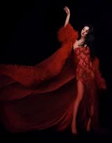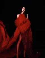 拍摄风格方面,这组写真注重光影与色彩的平衡,以暗调或简约背景突出红色裙装的视觉冲击力。摄影师巧妙运用自然光与人工打光,营造出温暖柔和的氛围,让周洁琼的肌肤透出健康光泽,同时裙装的质感得以细腻呈现。背景中的中式窗棂、红色帷幕等元素,隐约点出传统文化底蕴,却不喧宾夺主,使焦点始终聚焦于人物。这种构图简洁而富有层次,既符合现代审美,又蕴含东方韵味,堪称时尚摄影与人文情怀的佳作。