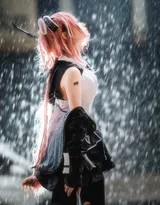 **雨景的运用**是这组作品的灵魂所在。潮湿的地面倒映着都市的霓虹与少女的身影,形成了虚实交织的梦幻空间。雨水打湿的发丝、沾满水珠的皮肤与武器,不仅增加了画面的真实感和故事氛围,更仿佛象征着角色在战斗或任务中所经历的洗礼。阴郁的天空与朦胧的光线共同构建了一个抽离现实的舞台,让观者仿佛能听到雨声、刀鸣与寂静交织的独特韵律。