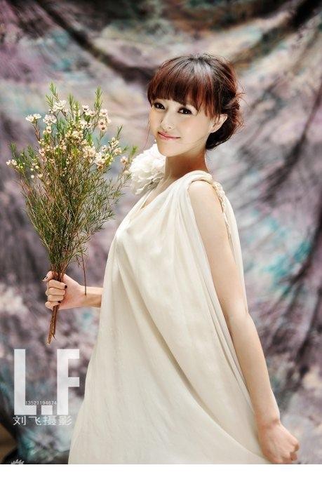 这组写真的场景选择与氛围营造也独具匠心。镜头跟随她的身影,从阳光洒金的油菜花田,到微风轻拂的宁静湖边,再至树影斑驳的林间小道。在一张照片中,她静静站立于金黄的油菜花田,裙摆的花纹与身旁真实怒放的花朵交相辉映,一时令人难以分辨哪是衣上印花,哪是自然春色。另一场景里,她悠闲地坐在开满小花的草坪上,裙摆如花瓣般铺散在绿茵中,她手持书本,含笑望向镜头,周身弥漫着被春日彻底拥抱的惬意与温柔。每一个场景都不是简单的背景板,而是与她、与衣裙共同叙事的角色,合力完成了一幅春日浪漫画卷的勾勒。