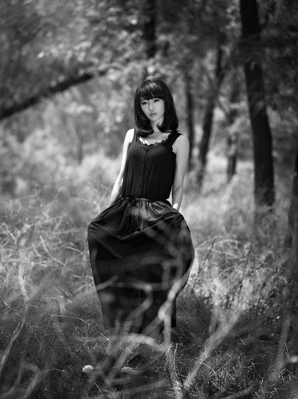 整组写真的核心氛围在于“墨色”与“怀旧”的交织。黑色并非单一的沉重,而是在不同面料与光影的雕琢下,呈现出丰富的层次——丝绒的温润、薄纱的朦胧、皮革的利落,都在诉说着不同的情绪。日系摄影中特有的自然光感与空气感也被巧妙运用,画面色调往往带着一丝淡淡的泛黄或柔和的低对比,如同翻阅一本尘封多年的旧相册,每一帧都沉淀着时光的韵味。